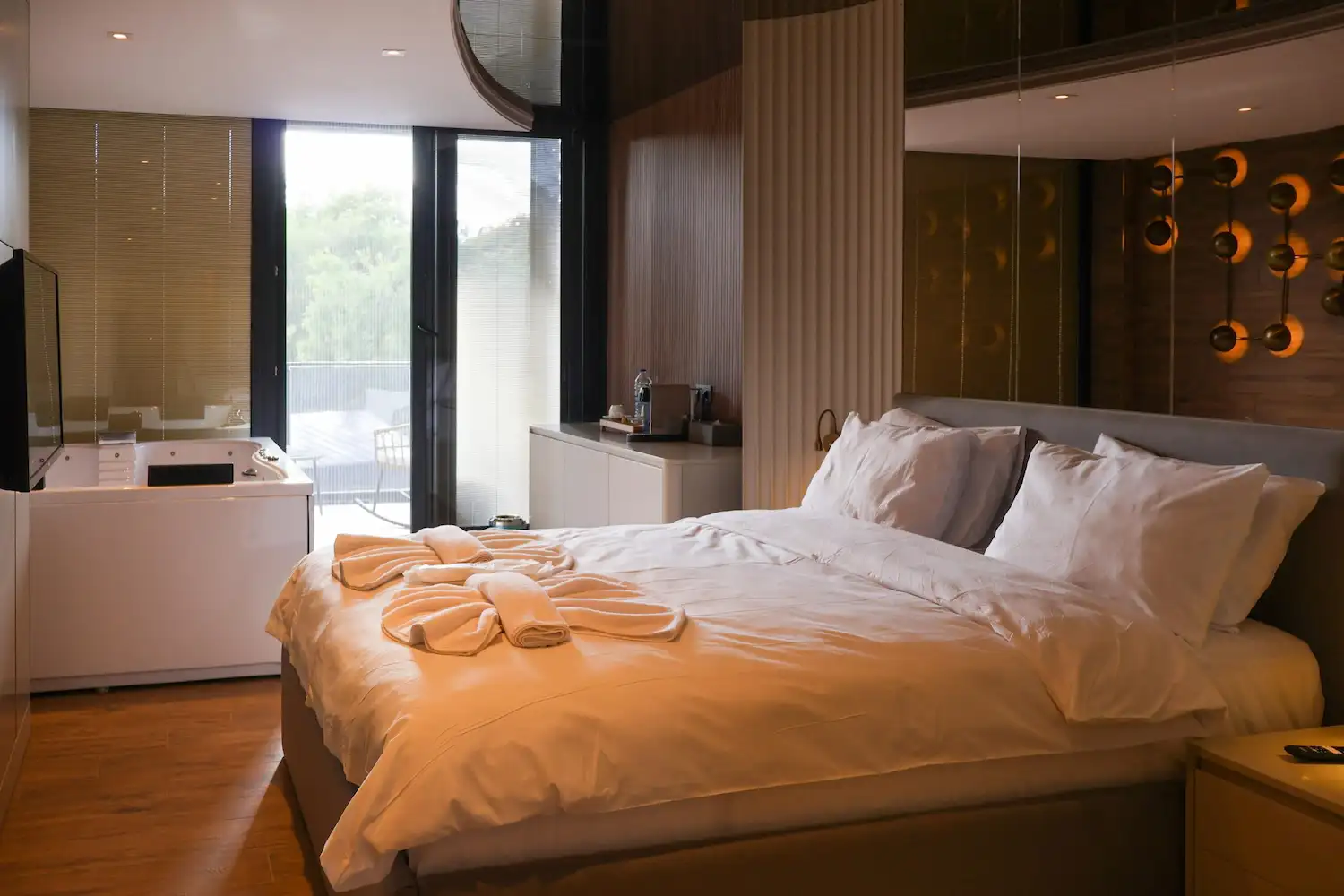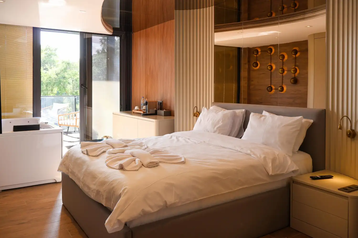 Özel hamam, sauna ve jakuzisiyle öne çıkan Junior Suite, sakin nehir manzaralı geniş balkonu ile konforu ve zarafeti bir araya getirir. Romantik bir kaçamak arayan çiftler için mükemmel bir seçimdir. Nehir kenarındaki Elvora Restaurant’ta huzurlu bir atmosferde seçkin lezzetlerin tadını çıkarın. Doğa ve lüksü Ağva’nın güzelliğinde buluşturan benzersiz bir kaçış.
